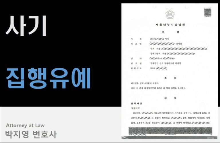 사기죄 본 변호인의 조력으로 실형 위기였던 의뢰인 집행유예 이끌어낸 사례