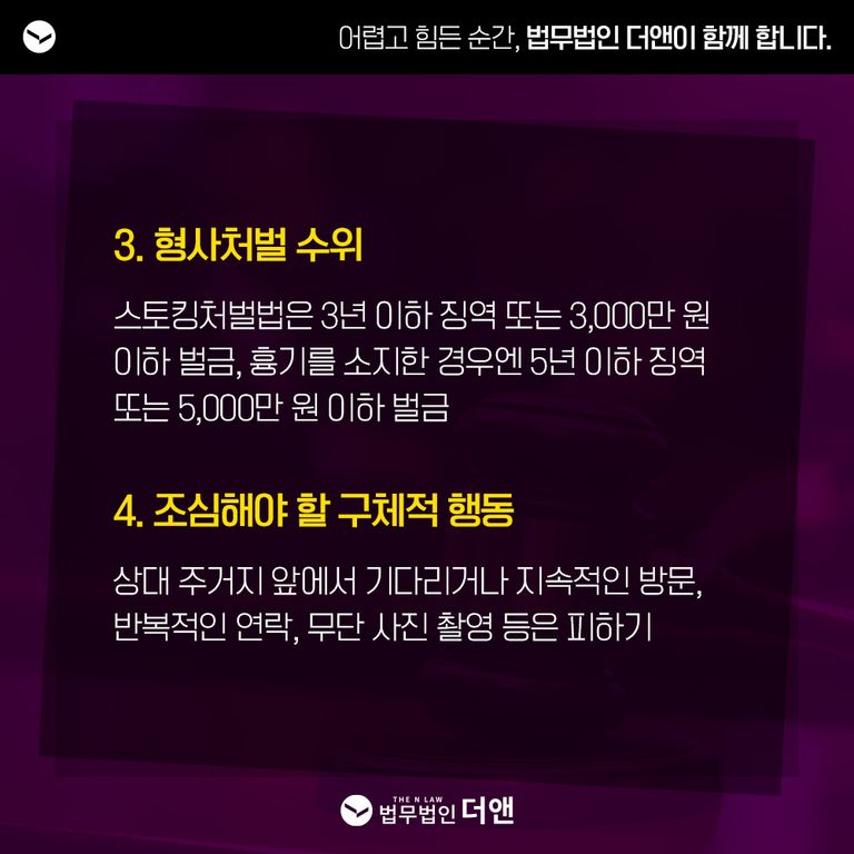 이러한 행위들은 스토킹 행위로 판단될 가능성이 높으므로 절대 피해야 합니다.