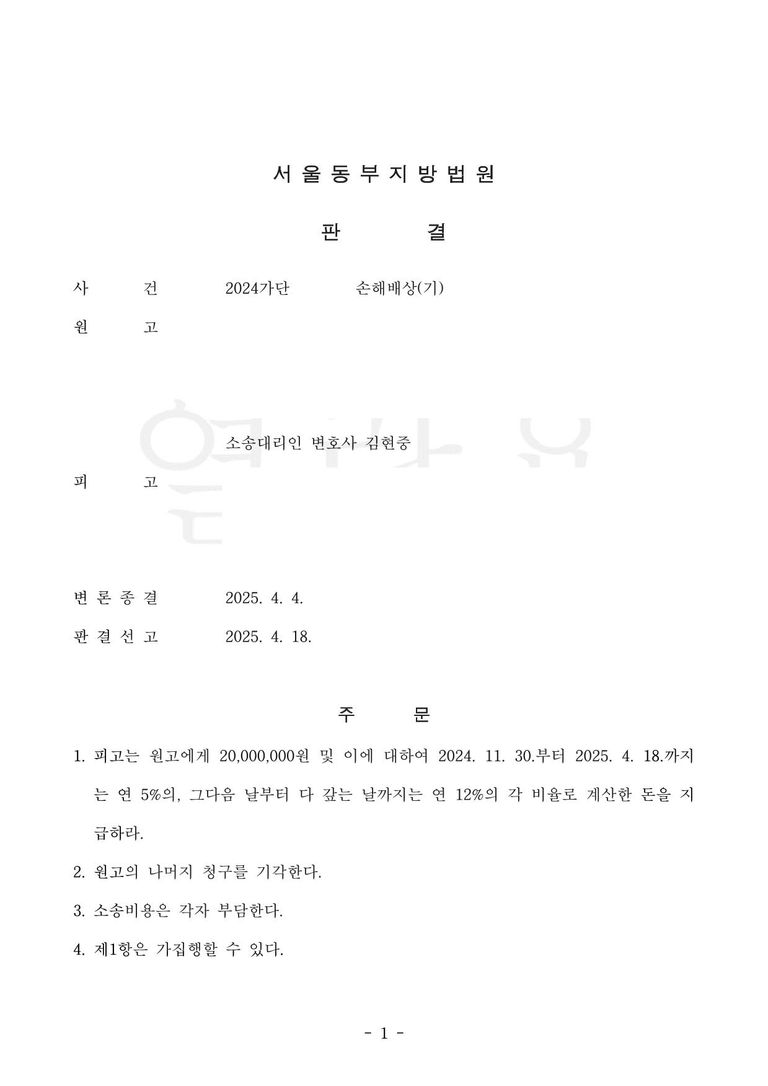 ****판결문을 보시면 아시겠지만 변호인으로서 제 이름만 들어가 있는 것을 확인하실 수 있습니다. 제가 온전히 혼자서 이끌어 낸 사례만을 저의 해결사례로 올리는 것이니 참고 바라며, 고용 변호사가 처리한 사건에서 제 이름만 들어간 사례라던 가 다른 변호사들과 함께 처리한 사건에서 제 이름이 들어갔다는 이유로 자신의 독자적인 해결사례인 것처럼 올리지 않습니다. 또한 착오가 없는 이상, 기존에 올렸던 해결사례를 일정 기간이 지난 후에 새로운 해결사례인 것처럼 재차 업로드 하지 않습니다. (날짜가 최근날짜가 아닌 것은 재업로드 한 것이 아니라, 바빠서 과거에 올리지 못한 해결사례를 이제서야 올리는 것 입니다. 영업에 크게 관심이 없는 이유로 미처 올리지 못한 해결사례들이 너무 많이 쌓여 있습니다.)****
