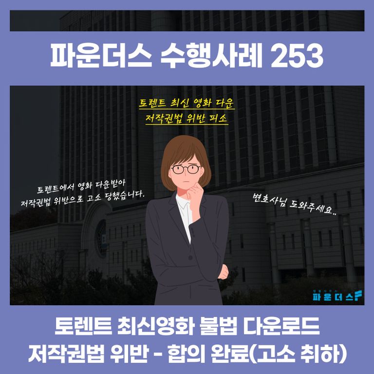 토렌트 사이트에서 최신영화를 다운받은 의뢰인은 저작권법 위반으로 고소를 당해 변호인의 조력을 요청하였습니다.