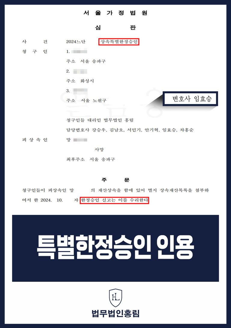 서울가정법원은 본 사건에 대한 특별한정승인 인용 결정을 내렸습니다.