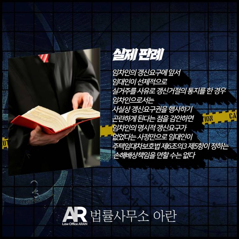 한마디로 임대인이 먼저 실거주하겠다고 통보를 한 경우에는, 임차인이 명시적으로 갱신요구권을 행사한 증거가 없다고 할지라도 손해배상을 받을 수 있습니다.