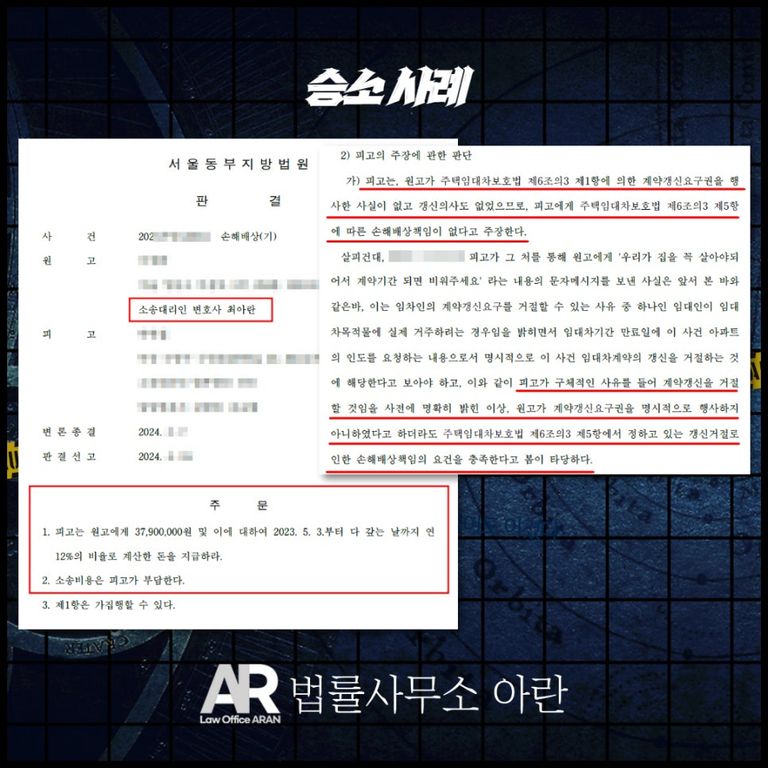 계약갱신청구권 거부 분쟁조정 실패 후 전부 승소한 사례 | 로톡