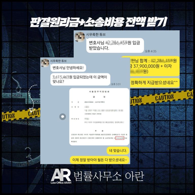 이후 의뢰인은 임대인으로부터 판결 원금, 이자는 물론이고 소송에 들어간 비용까지 전부 지급받았습니다.