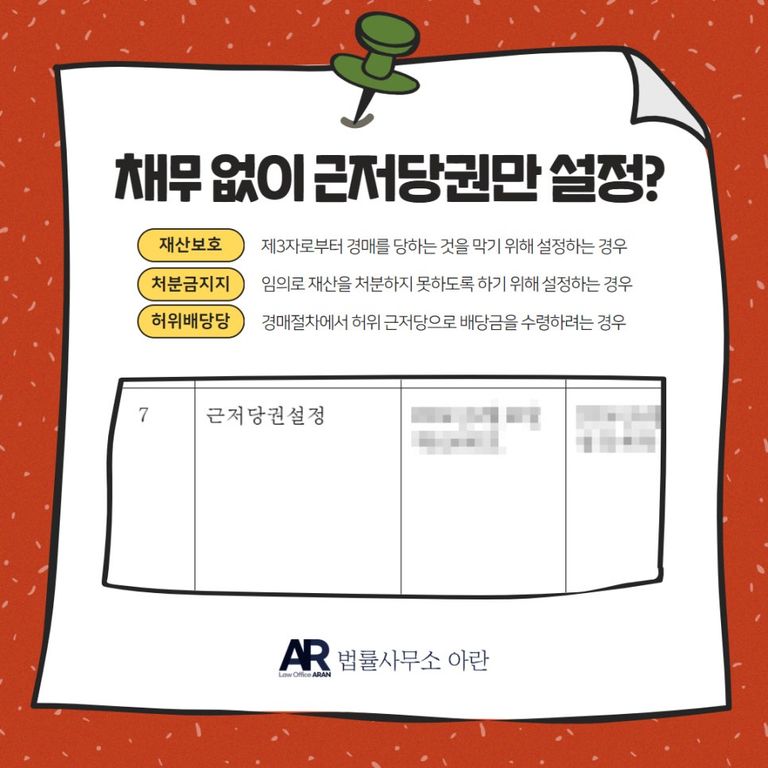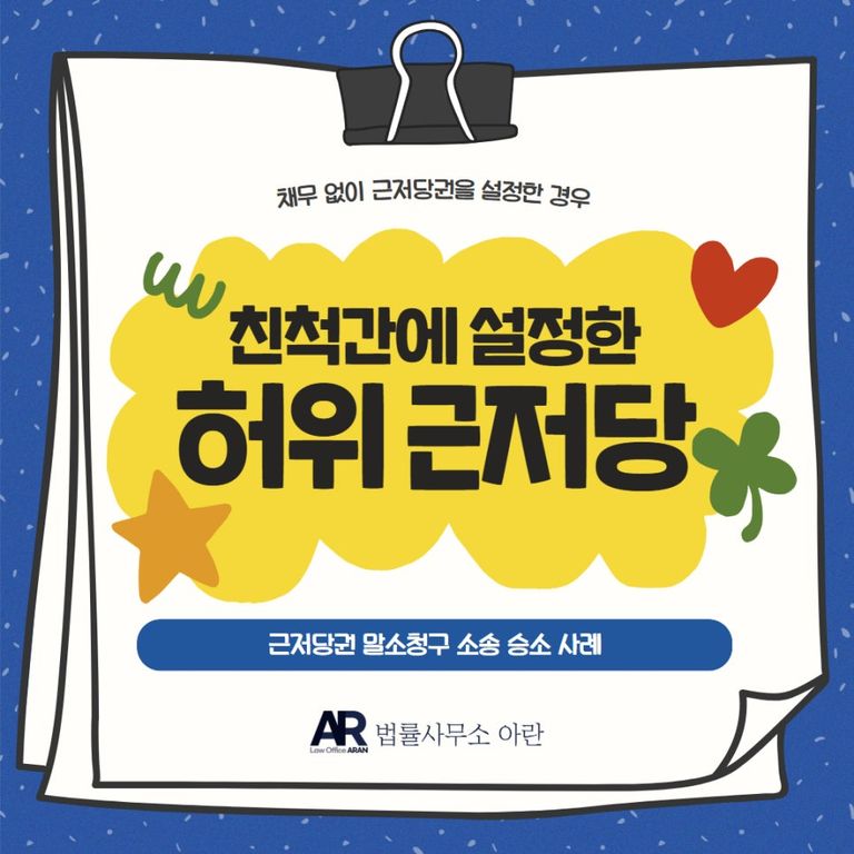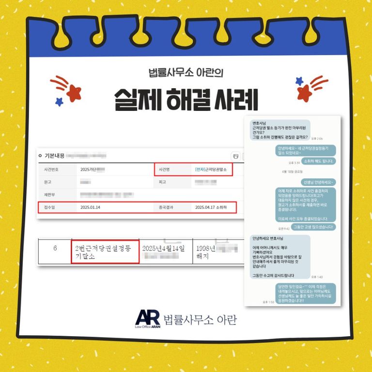 이에 의뢰인은 어쩔 수 없이 법률사무소 아란을 찾아 근저당권 말소 청구 소송을 의뢰하셨습니다.
