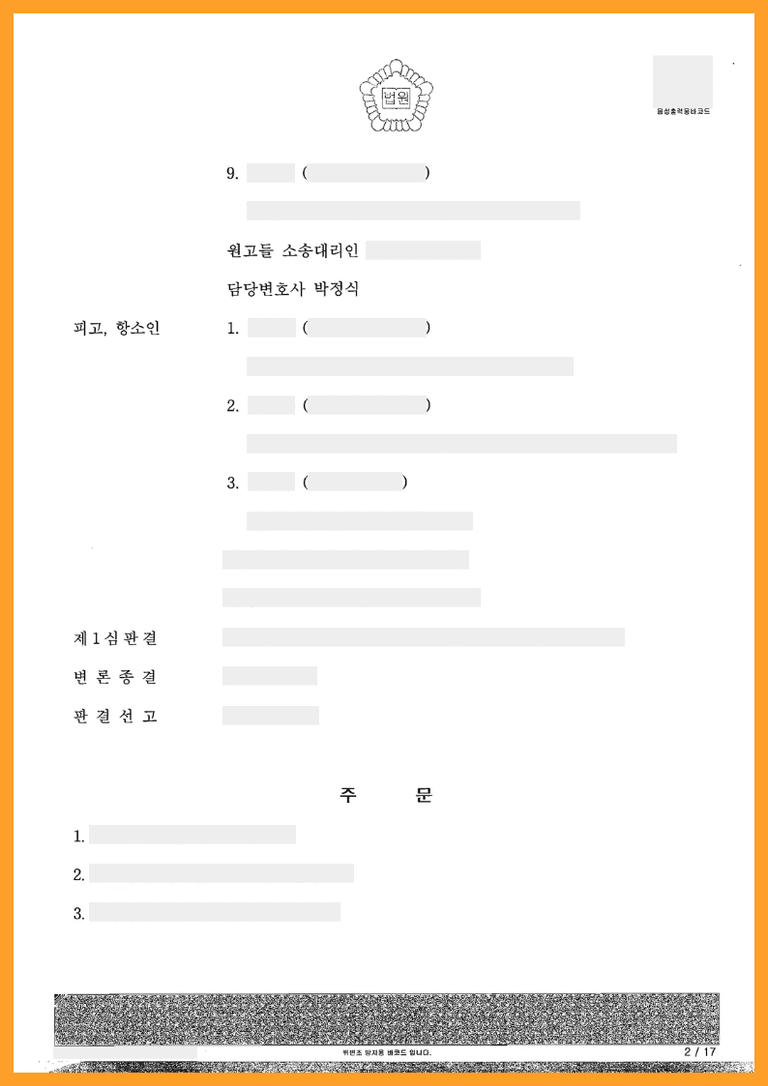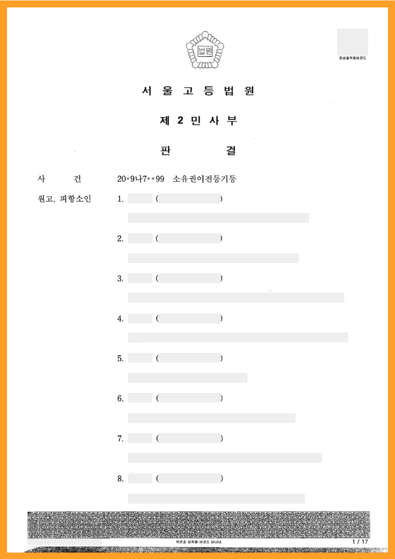 이에 망인1의 자녀들과 손자들은 원고가 되어 망인2의 상속인들을 상대로 위 부동산의 소유권이 자신들에게 있음을 원인으로 하여 소유권이전등기 소송을 제기하였습니다.