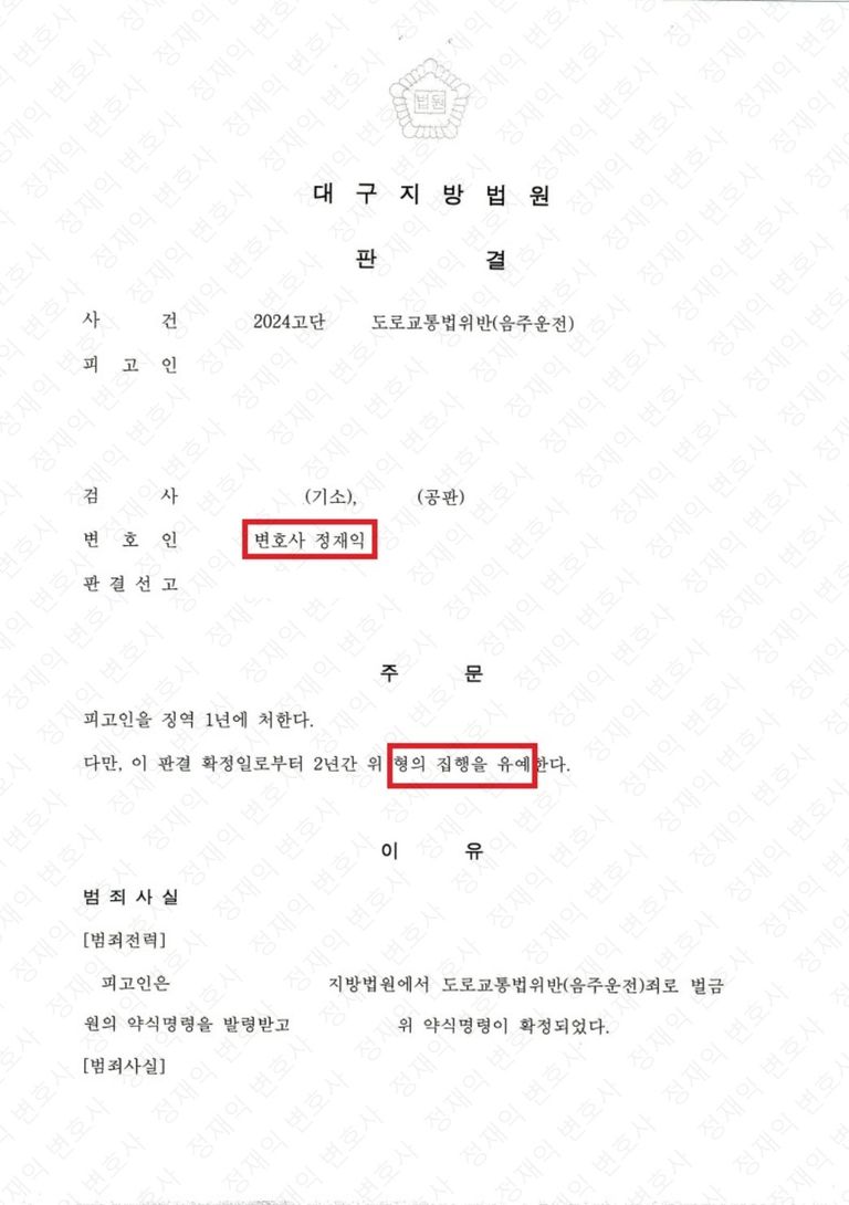 오늘은 음주운전 재범으로 실형 위기에 처했던 의뢰인이 정재익 변호사의 체계적인 법률 대응을 통해 집행유예를 받게 된 실제 성공 사례를 공유합니다.