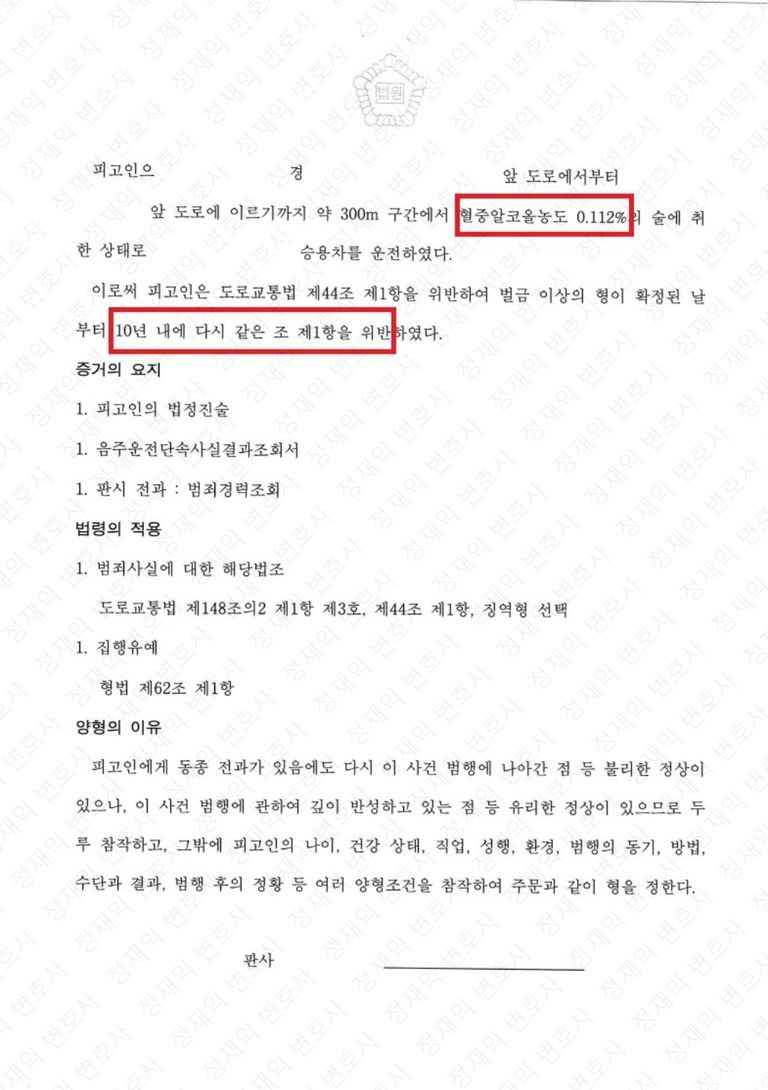 🚫 혈중알코올농도 0.112%와 재범 사실만으로 감경 요소 입증 실패