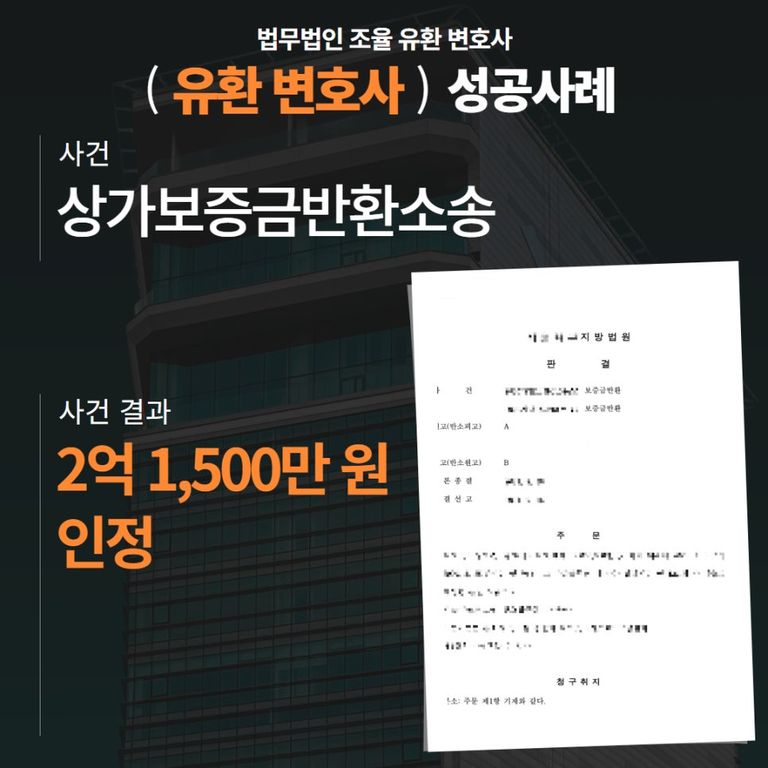 상가보증금반환소송 → 결과 : ‘2억 1,500만원’ 인정