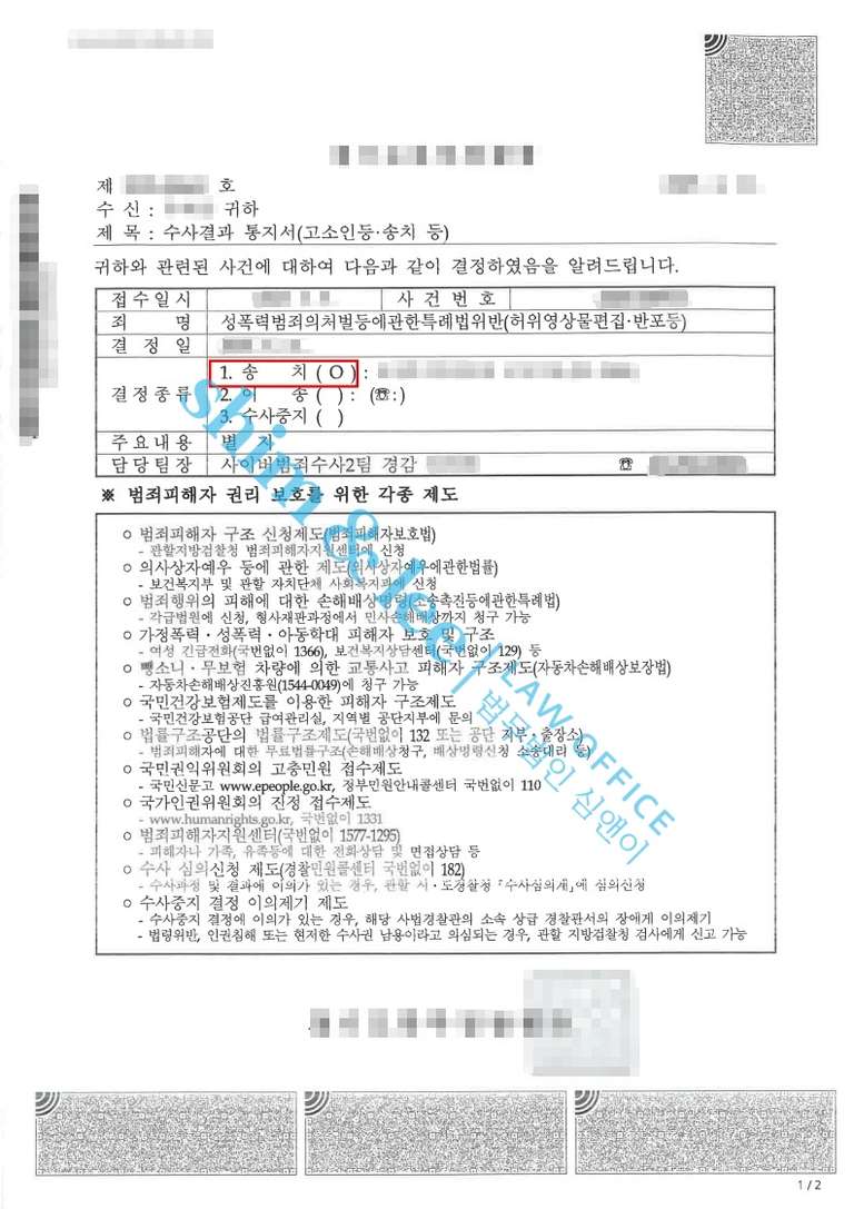 -결국 가해자는 사람의 얼굴, 신체 또는 음성을 사용한 촬영물 등을 수치심을 유발할 수 있는 형태로 편집하여 이를 유포한 사실이 인정되어 허위영상물편집반〮포죄로 송치되었습니다.