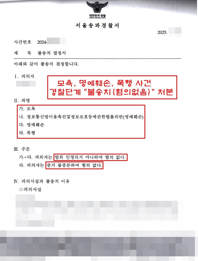 5. 결과 : 불송치(혐의없음)