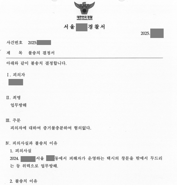 3. 성공사례: 택시 업무방해 불송치(혐의없음) 결정