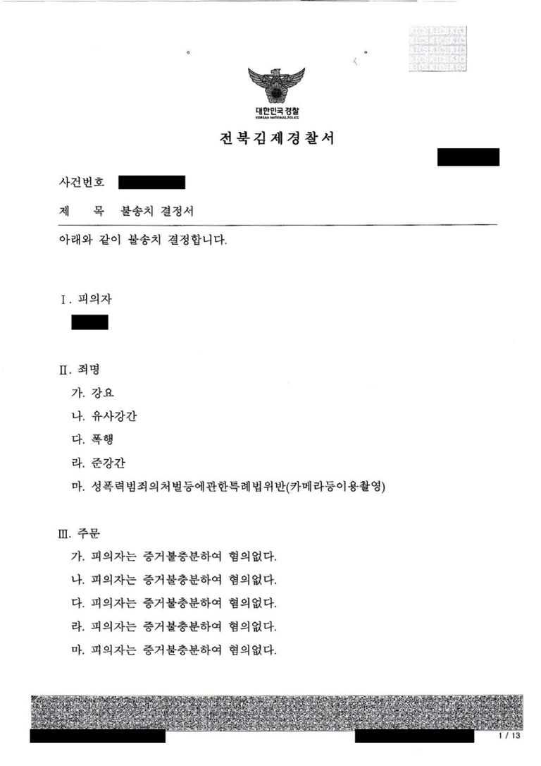 경찰에서는 한샘의 주장을 모두 받아들여 A씨에게 전부 협의없음 처분을 결정하였습니다.
