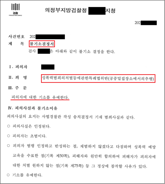 또한 성범죄 사건에서 기소유예를 받기 위해 피해자와의 합의가 필수적입니다. 변호인은 피해자와의 합의도 직접 대행하여 최소한의 비용으로 합의를 이끌어내고 처벌불원서까지 받아냈습니다.