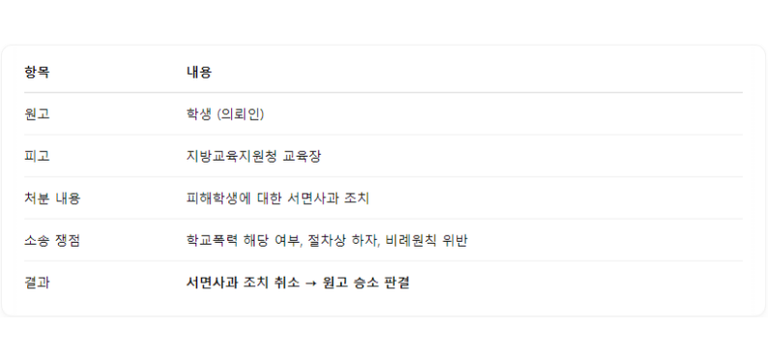 학생을 대상으로 한 ‘서면사과’ 같은 행정조치는 사소해 보이지만, 향후 학생의 진로, 명예, 입시에 심각한 영향을 줄 수 있는 민감한 조치입니다.