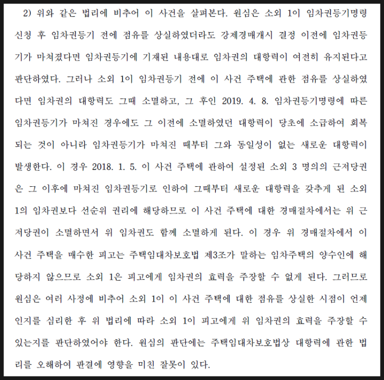 3. 대법원의 판단: "점유 상실 시 대항력 소멸, 등기 시 새로 발생!"