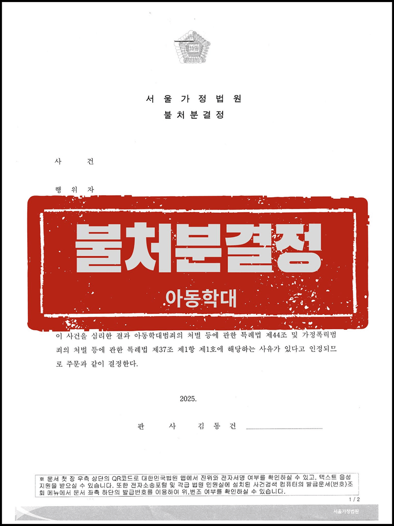 아동을 폭행한 사실을 완벽하게 부인할 수 없었기에 혐의는 인정되었지만 형사법원이 아닌 가정법원으로 사건을 송치할 수 있었고, 가정법원에서는 불처분결정을 받는 데 성공하였습니다.