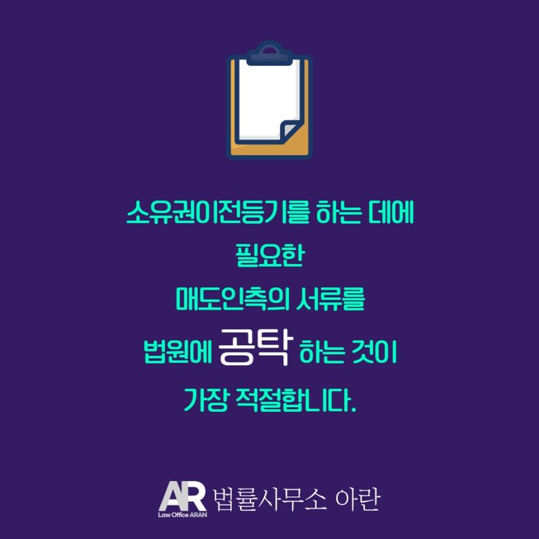 따라서 이런 저런 부분을 신경쓰지 않고 가장 확실하게 진행하려면 소유권이전등기에 필요한 서류를 지참하여 이를 법원 공탁소에 공탁하는 방법이 가장 적절합니다. 공탁을 할 때에 매수인이 잔금을 지급하는 것을 조건으로 공탁금을 출급해갈 수 있도록 하는 반대급부 조건부 공탁을 하면 됩니다.
