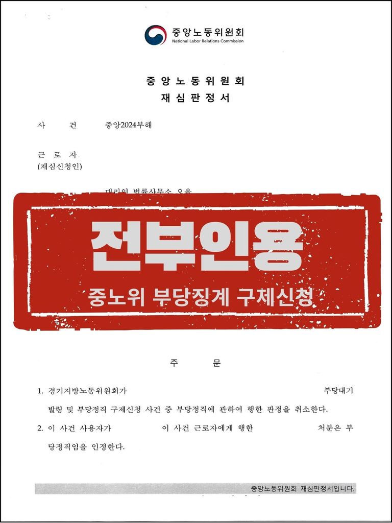 법률사무소 오율의 선택과 집중이 빛을 발하여, 결국 초심 판정을 전부 뒤집고 전부인용 판정을 얻을수 있었습니다.