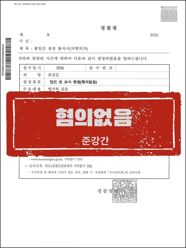 위와 같은 주장에 수사기관에서는 의뢰인을 입건 전 조사 종결(혐의없음) 결정 하였고, 의뢰인은 안심하고 일상으로 돌아갈 수 있었습니다.