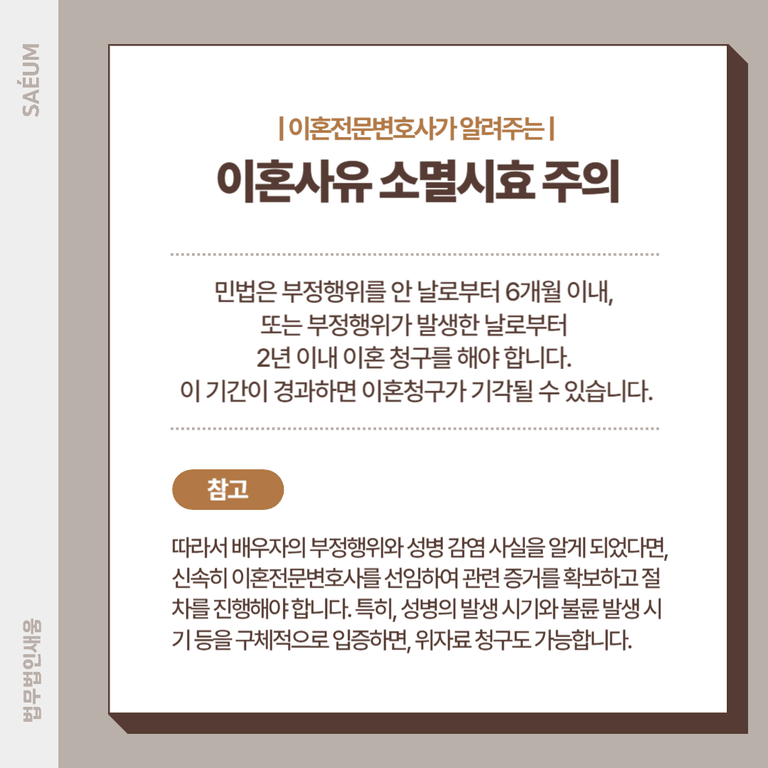 이혼사유 소멸시효 주의