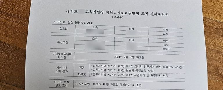 결국 교권침해 인정됐습니다. 학생과 학부모 모두에게 교권침해가 인정이 되었고, 선생님께서 학생에 대한 징계보다는 회복적인 조치가 취해지기를 원하신다고 하셔서 학생은 교육활동 이수 정도의 선에서 처분을 받게 되었습니다.