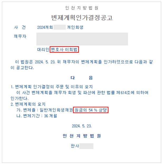 문제는 이 과정에서 대리인 사무실에서 안내를 했음에도 신청인이 기억을 못하거나 안내를 받지 못해서 문제가 생기는 경우가 종종 있습니다. '대표적인 사례가 최초 변제일과 조건부 인가'입니다.