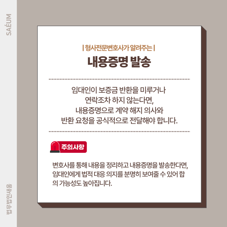 특히 변호사를 통해 내용을 정리하고 발송한다면, 임대인에게 법적 대응 의지를 분명히 보여줄 수 있어 합의 가능성도 높아집니다.