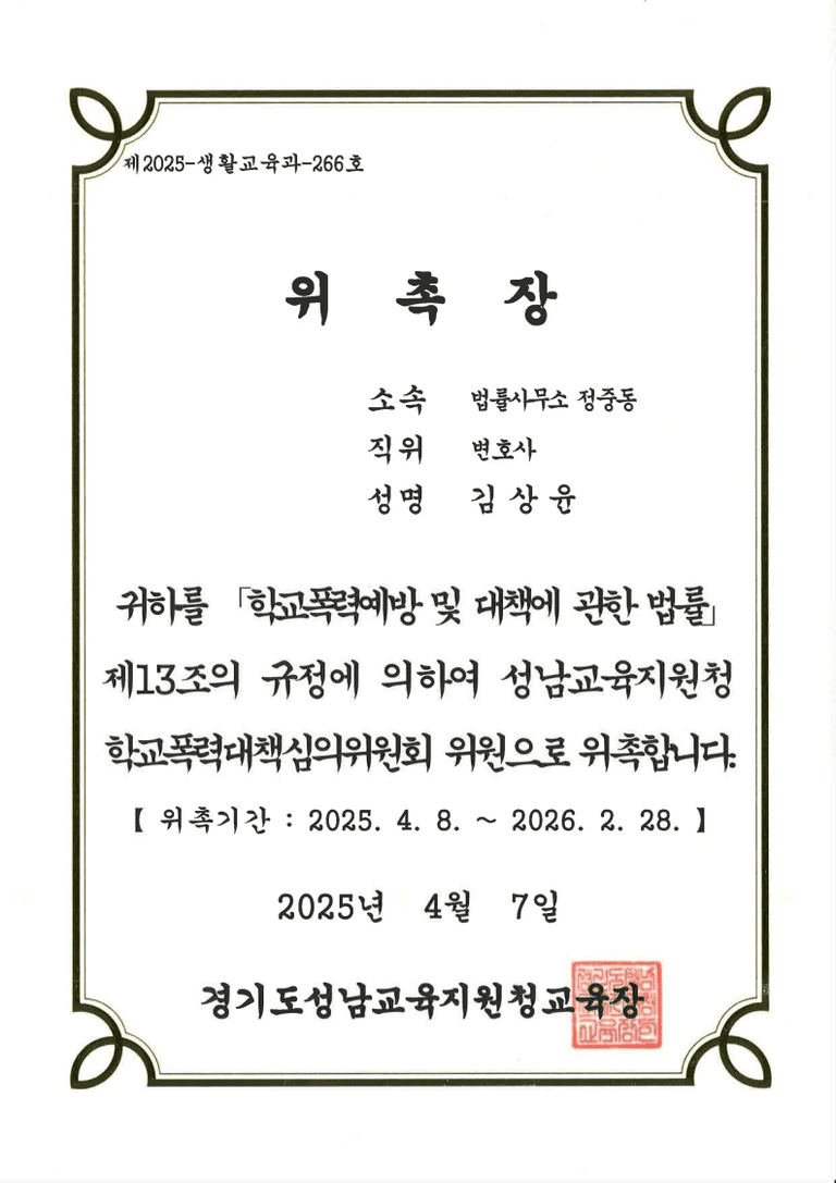 수많은 학폭 사건을 실질적으로 대응해 온 전문 경험을 보유하고 있습니다.