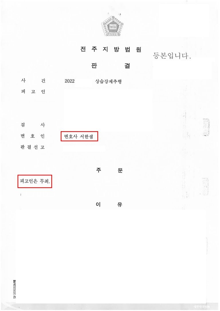 특히 이번 사건은 피고인이 무죄를 선고받았음에도 검사측에서 항소를 하지 않아 1심에서 확정이 된 매우 드문 사례라고 볼 수 있습니다.