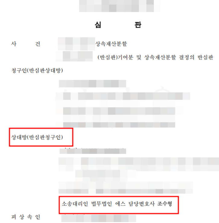그런데 몇달 뒤 시아버지가 의뢰인을 상대로 상속재산분할심판청구를 제기하였습니다.