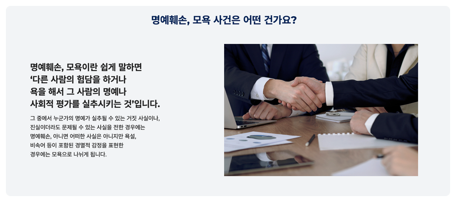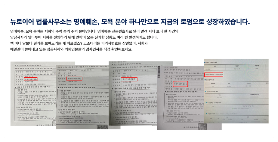 저희는 명예훼손, 모욕죄 사건을 시작으로 지금의 사이버 범죄 로펌까지 거듭 성장해오며 명예훼손, 모욕죄 고소 대리부터 방어까지 도움을 드리고 있습니다.