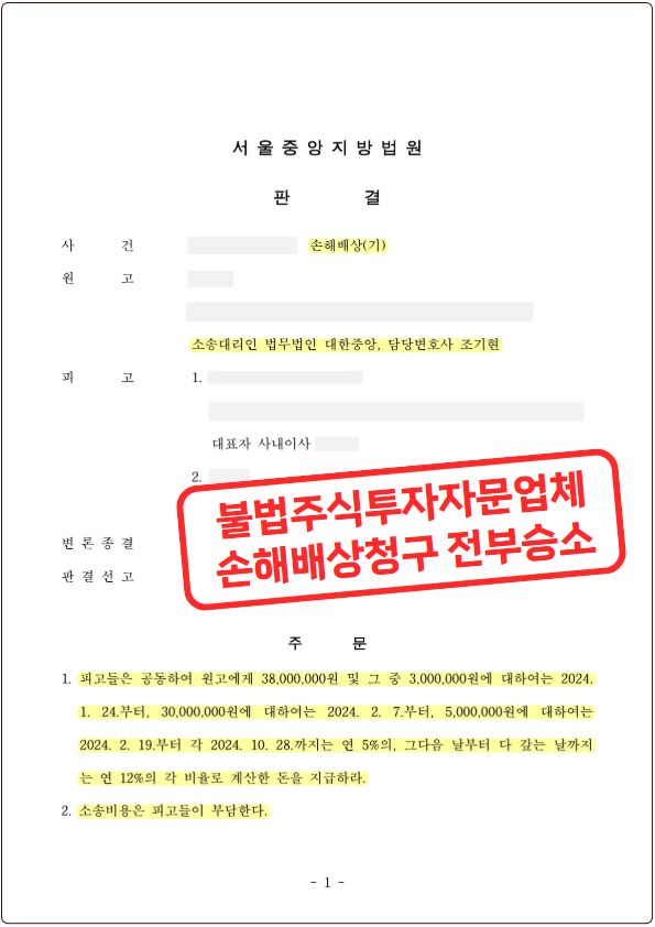 ![[❗민사] 불법주식투자자문업체 손해배상청구 전부승소!](/_next/image?url=https%3A%2F%2Fd2ai3ajp99ywjy.cloudfront.net%2Fuploads%2Ftitleimage%2Foriginal%2F5b3f5a7eb4098b79a25f88fe-original.jpg&w=3840&q=75)