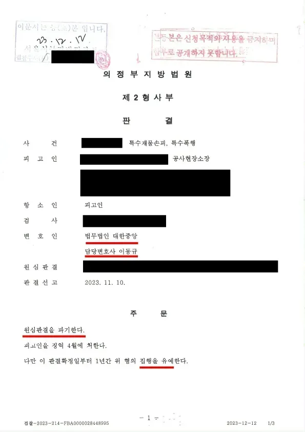 재판부는 이동규 변호사의 주장을 인정하여 원심판결을 파기하고 집행유예로 감형하는 판결을 내렸습니다.
