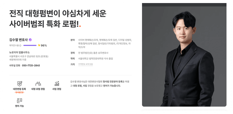 사이버 범죄 로펌 뉴로이어의 김수열 대표 변호사입니다.