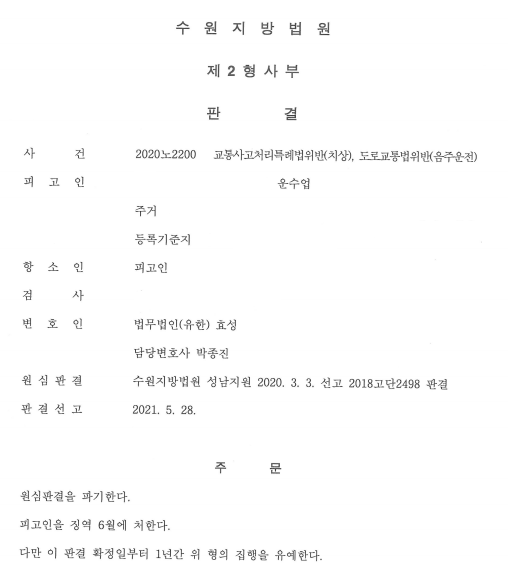 그리고 의뢰인은 수사 후 재판 전에 주소를 바꿈으로 인하여 공소장 등을 전혀 송달받지 못 했습니다. 이로 인해 1심은 공시 송달의 방법으로 진행되었고, 의뢰인은 아무런 변호도 받지 못하고 1심에서 징역 6월의 실형을 선고받았습니다.