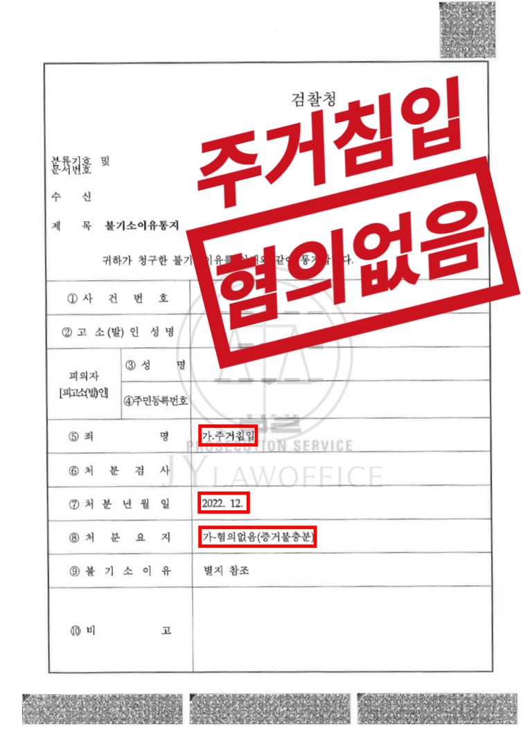 주거침입죄는 침입의 고의 유무, 정당한 사유의 존재, 합의 가능성 등이 핵심 대응 포인트가 되는데요, 만일 주거침입죄의 피의자로 입건되었거나 혐의를 받고 있다면 변호사를 통해 방어 논리를 구성하고 대응해야 기소 가능성을 조금이라도 낮출 수 있겠습니다.