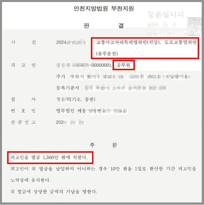 음주로 인한 교통사고는 초범의 경우에도 징역형의 집행유예가 선고되는 경우가 다수입니다. 그런데 공무원이 징역형의 집행유예를 받게 되면 국가공무원법에 따라 당연퇴직을 당하게 되고 이는 법률의 규정에 따른 것이므로 소청심사(행정심판)나 행정소송으로도 막을 수가 없습니다. 뿐만 아니라 이와 같은 경우에는 공무원 연금도 감액 당하게 됩니다.