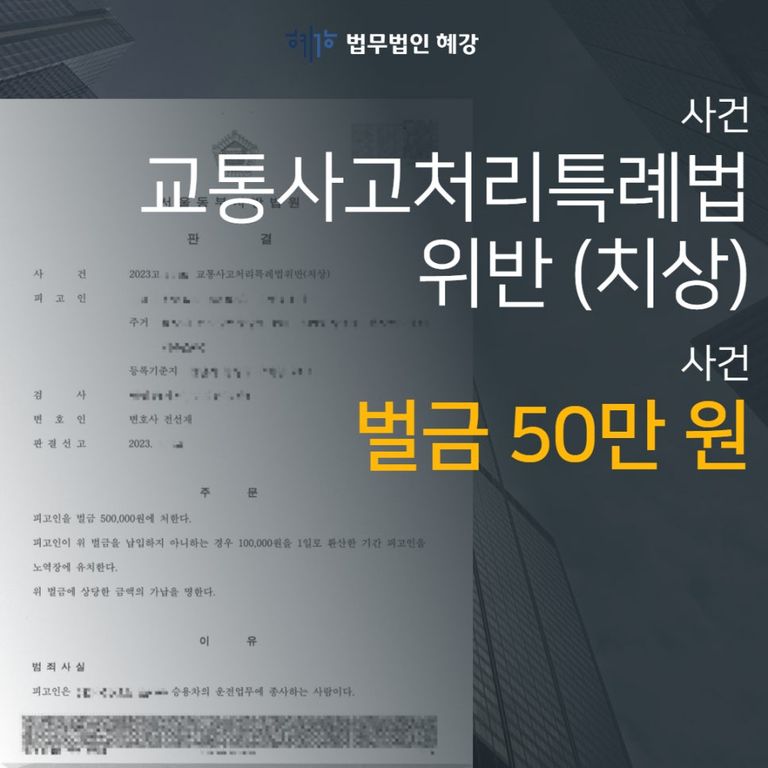 이러한 노력 결과 법원에서는 ‘벌금 50만 원’이라는 상대적으로 가벼운 처벌을 선고하였습니다.
