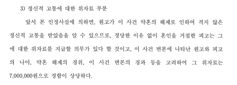 진혜원 변호사는 약혼 상태에서 정당한 사유 없이 파혼 당한 약혼자측을 대리한 사건에서