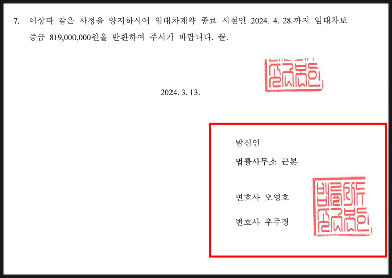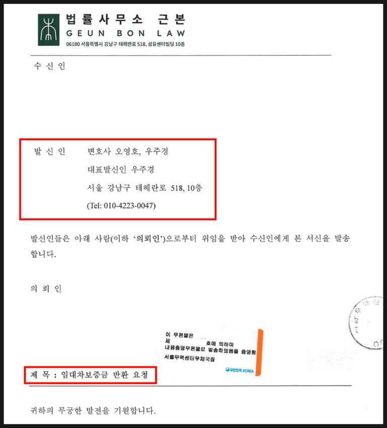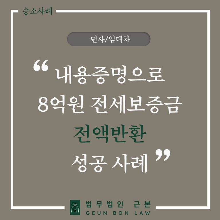 - 전세금반환 임대차 보증금내용증명 통해 임대인 압박하여 월세보증금 8억 전액반환 성공 사례