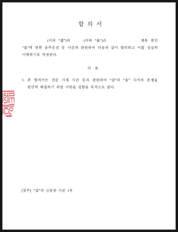 의뢰인은 혈중알콜농도 0.103% 상태에서