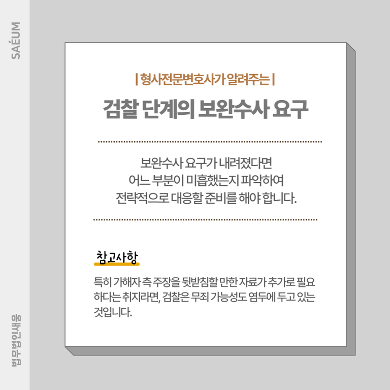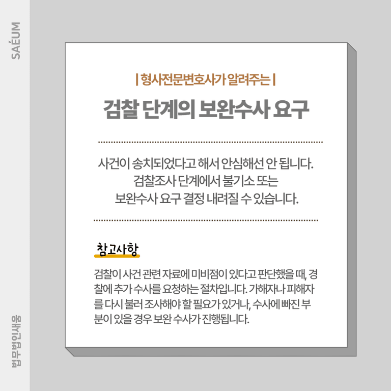 검찰 단계의 보완수사 요구, 겁먹지 마세요