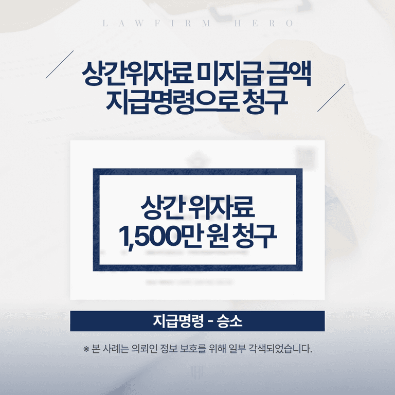 해당 의뢰인은 소송을 부담스러워 하는 피고의 심리를 이용해 지급명령을 활용했고, 결국 위자료를 전액 받을 수 있었습니다.