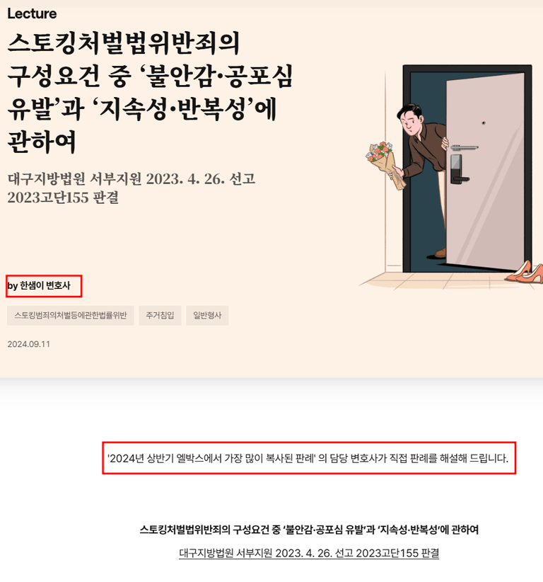 제가 수행했던 위 사건은, 엘박스 로웨이브(lawwave)의 ✅<2024년 상반기 변호사들이 가장 많이 찾아본 판례>✅에 선정되기도 하였습니다.