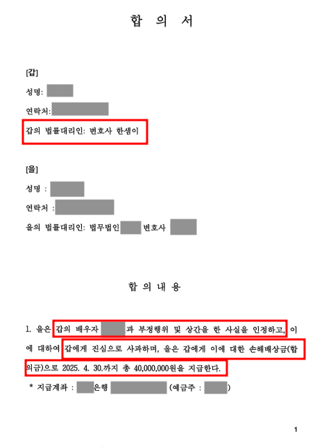 1) 상간녀로부터 4,000만원의 합의금(위자료)과,