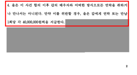 만남/연락 1회당 4,000만원의 위약금을 지급하도록 하는 내용으로