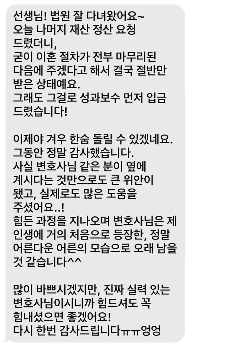 “지금 변호사님 잘 도움주고 계시니