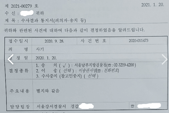 4. 의뢰인이 금전을 송금한 액수와 기간이 길어 수사가 길어지기는 하였지만, 결국 의뢰인은 사기와 금융거래실명법위반 혐의에 관하여 모두 불기소 처분을 받았습니다.