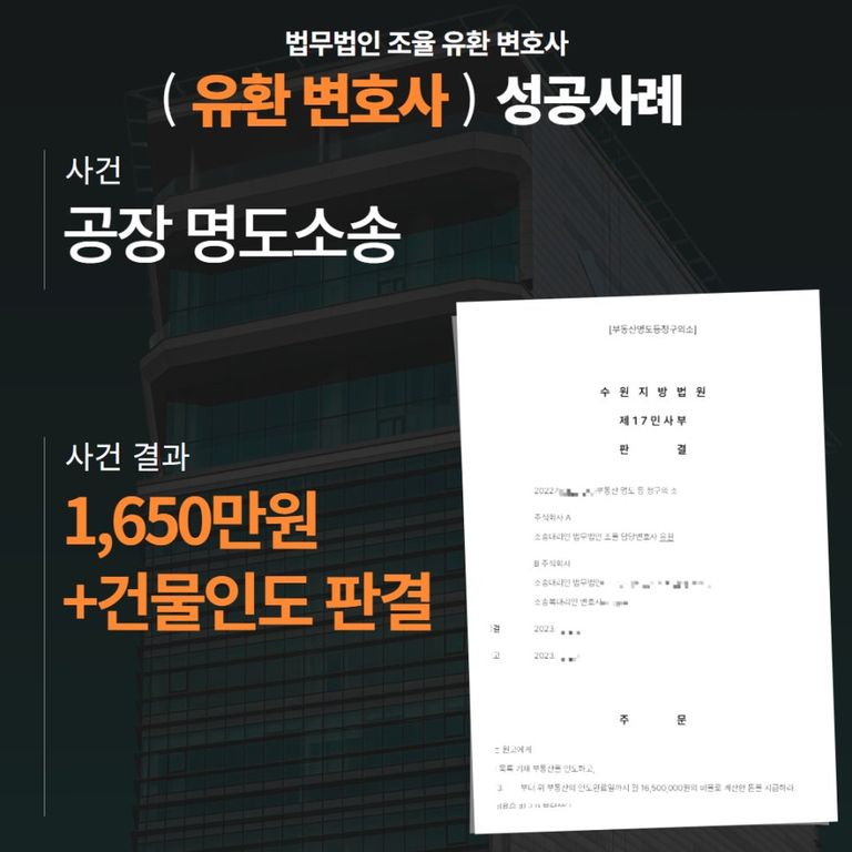 공장 부지 명도소송 → 결과 : ‘1,650만원 + 인도’ 판결
